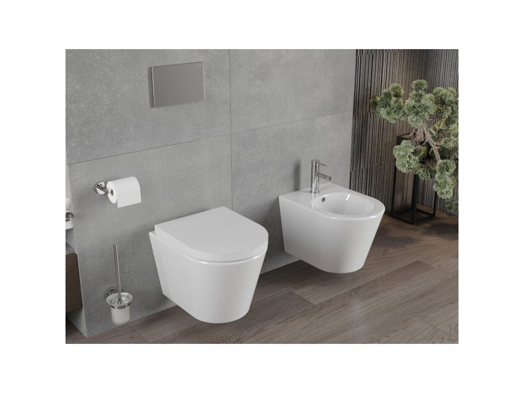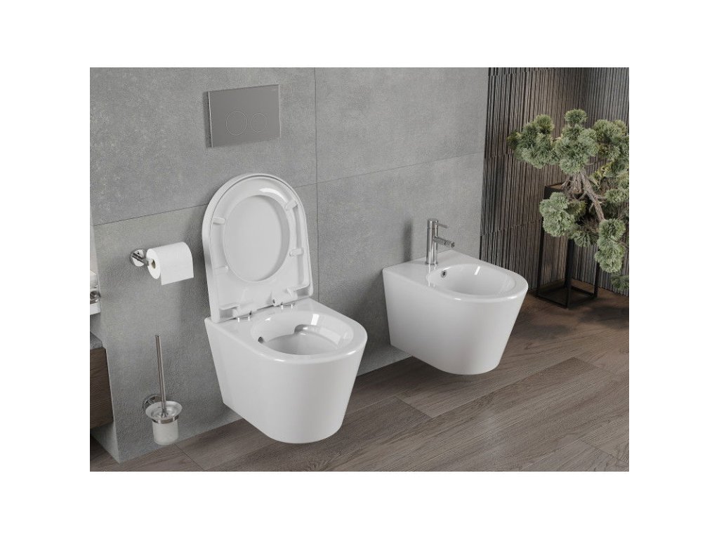 Mexen Rico závesný WC záchod, splachovanie Rimless, s doskou duroplast pomaly padajúcou, biela - 30720200
