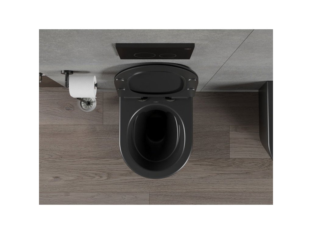Mexen Rico závesný WC záchod, splachovanie Rimless, s doskou duroplast pomaly padajúcou SLIM, čierna matná - 30720185