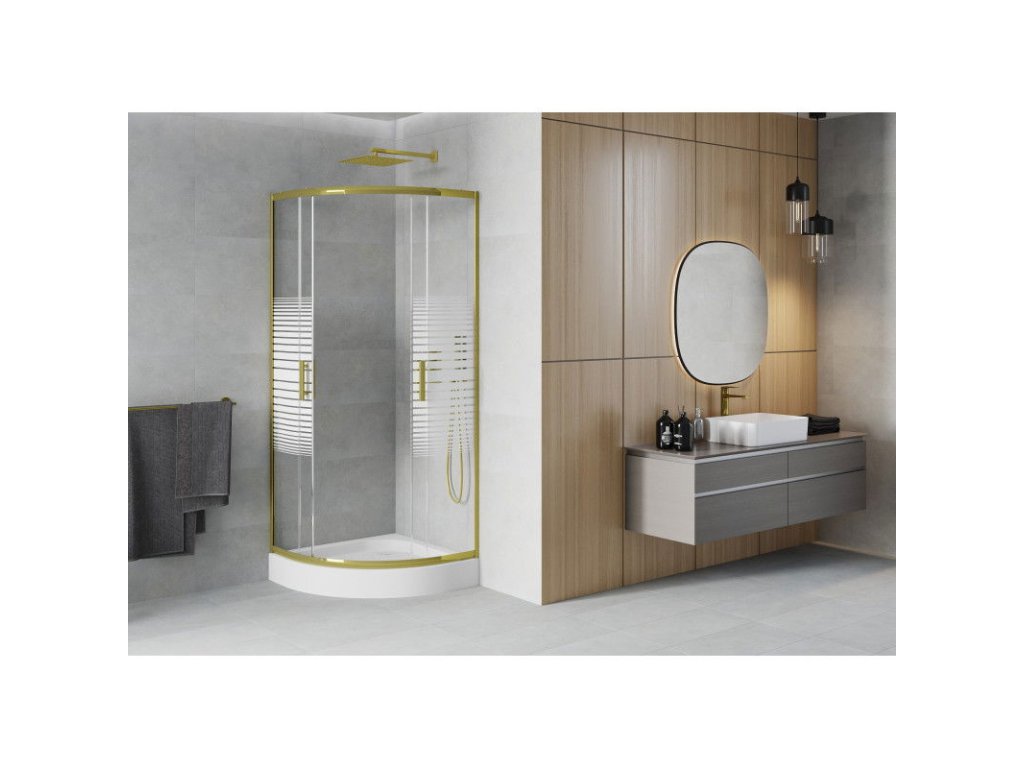 Mexen Rio polkruhový sprchový kút 80 x 80 cm, pruhovaný, zlatý + Rio sprchová vanička, biela - 863-080-080-50-20-4710