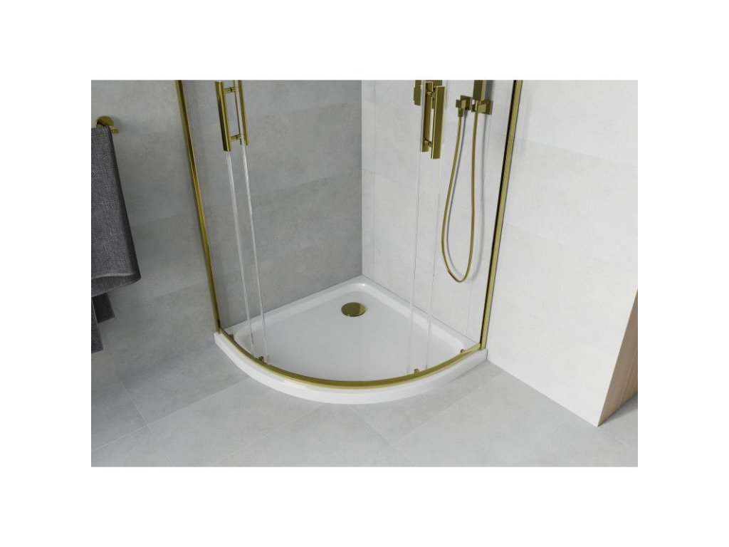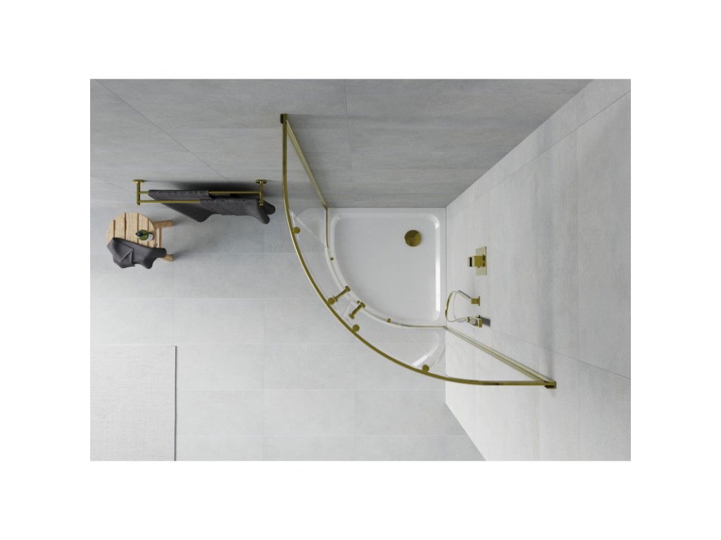 Mexen Rio polkruhový sprchový kút 80 x 80 cm, transparentný, zlatý + Plochá sprchová vanička, biela - 863-080-080-50-00-4110G