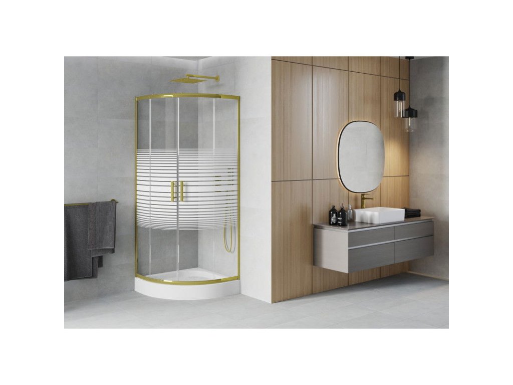 Mexen Rio polkruhový sprchový kút 90 x 90 cm, pruhovaný, zlatý + Rio sprchová vanička, biela - 863-090-090-50-20-4710
