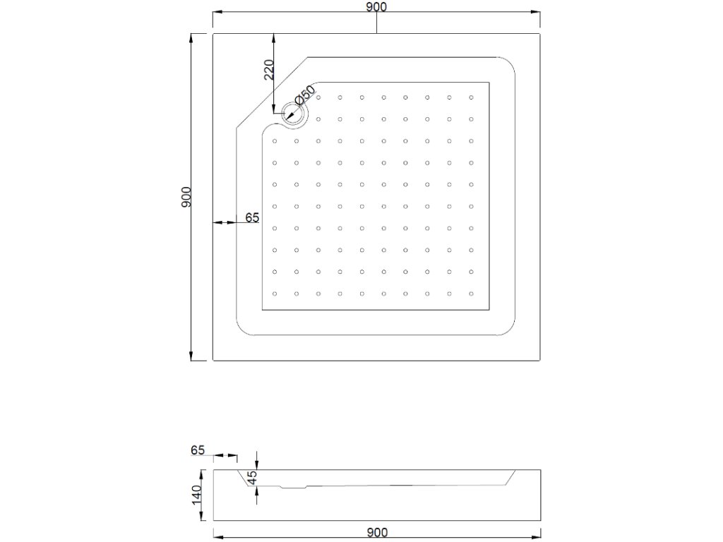 Mexen Hugo štvorcová sprchová vanička SMC 90 x 90 cm, biela, čierna mriežka - 42109090-B
