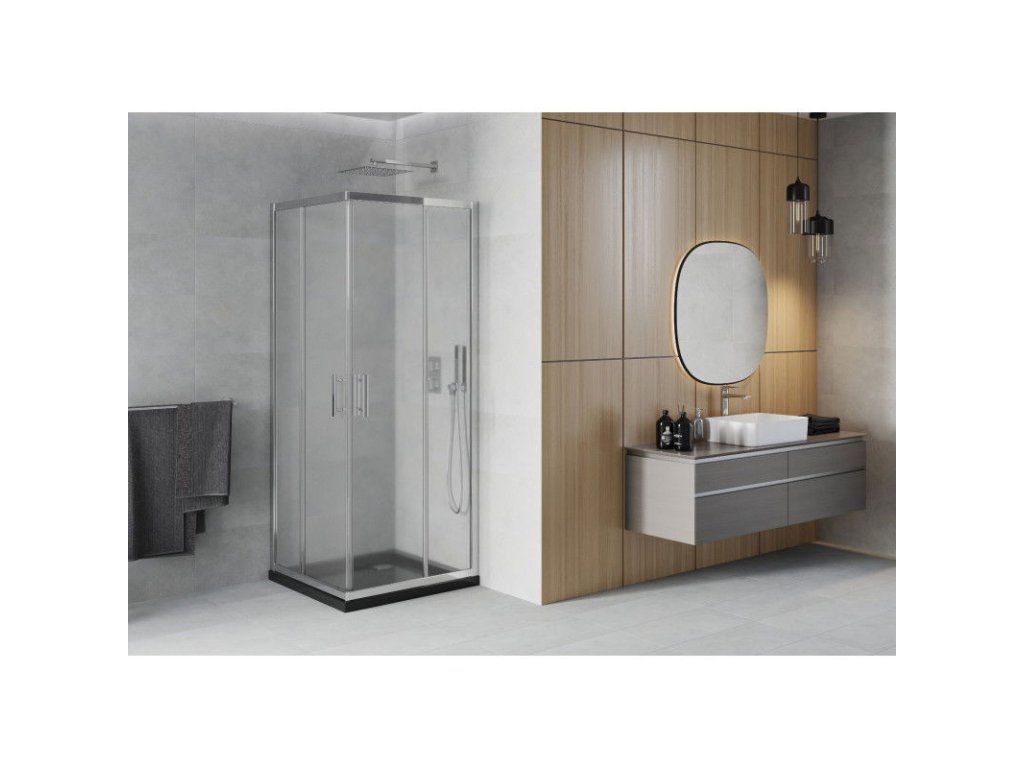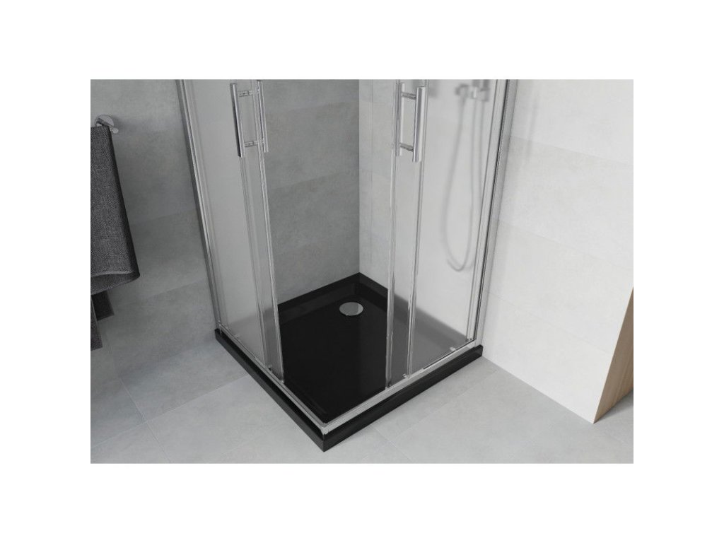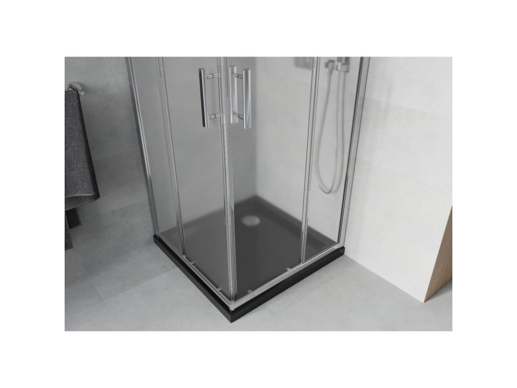 Mexen Rio sprchový kút štvorcový 70 x 70 cm, námraza, profil chróm + sprchová vanička Flat, čierna - 860-070-070-01-30-4070