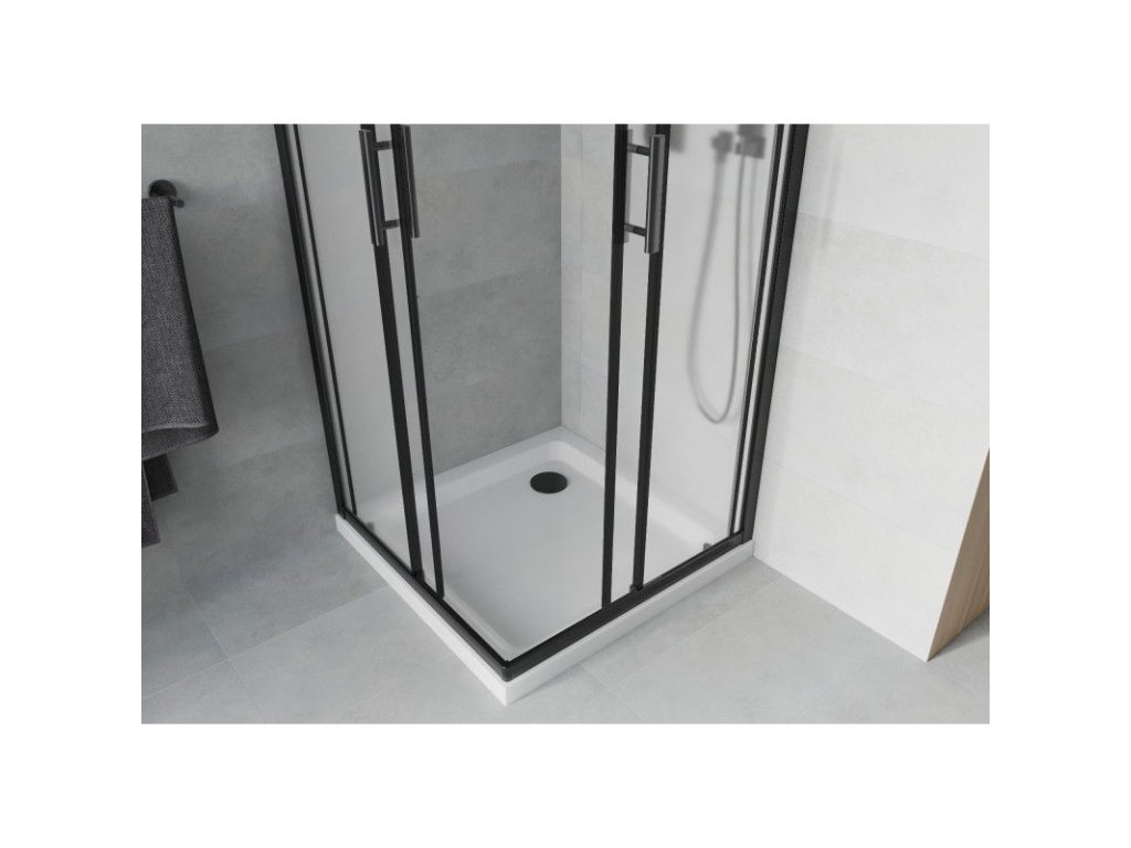 Mexen Rio sprchový kút štvorcový 70 x 70 cm, námraza, profil čierny + sprchová vanička Flat, biela - 860-070-070-70-30-4010B