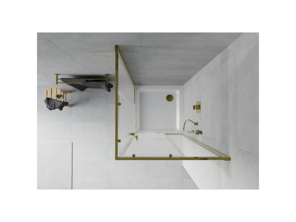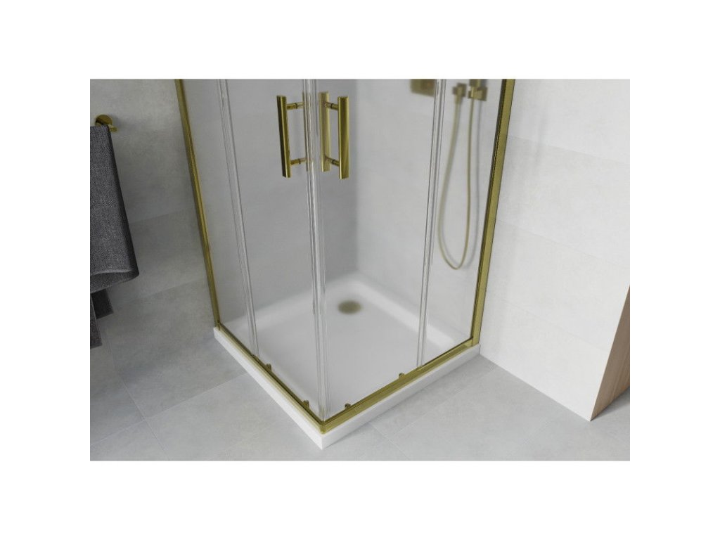 Mexen Rio sprchový kút štvorcový 70 x 70 cm, námraza, profil zlatý + sprchová vanička Flat, biela - 860-070-070-50-30-4010G