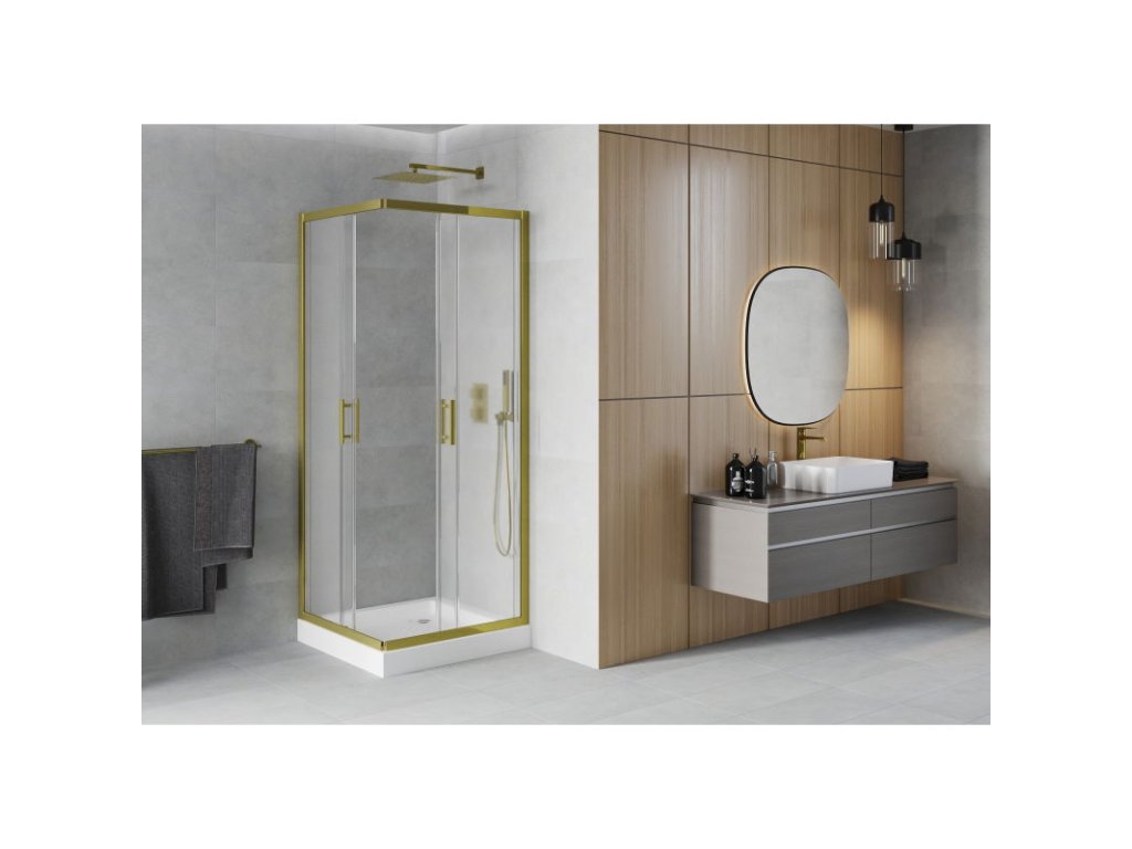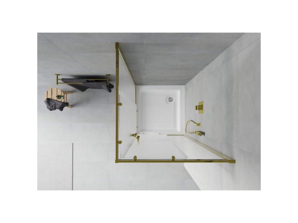 Mexen Rio sprchový kút štvorcový 70 x 70 cm, námraza, profil zlatý + sprchová vanička Rio, biela - 860-070-070-50-30-4510