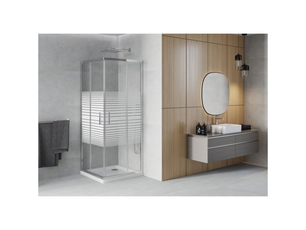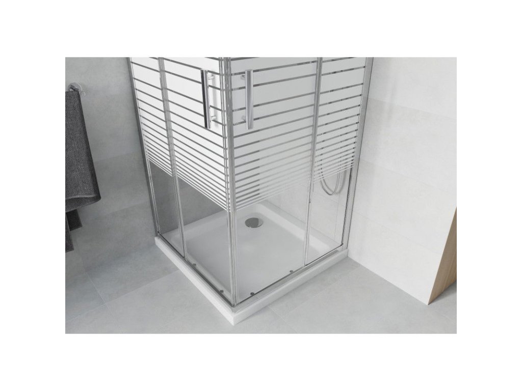 Mexen Rio sprchový kút štvorcový 70 x 70 cm, pásy, profil chróm + sprchová vanička Flat, biela - 860-070-070-01-20-4010