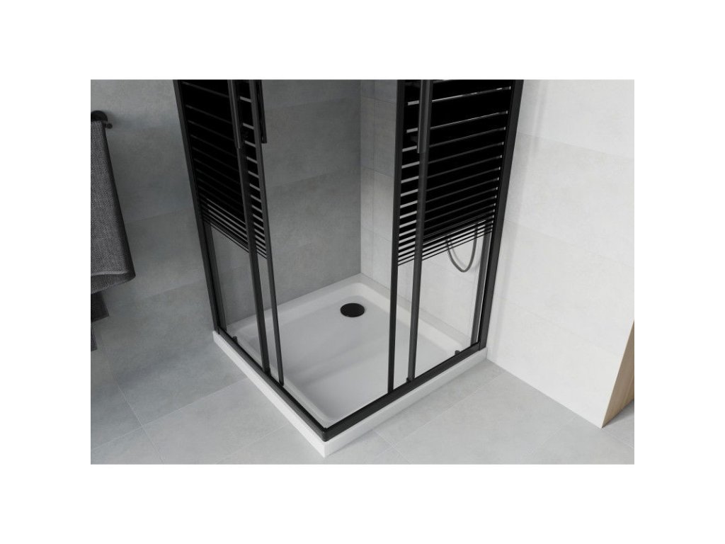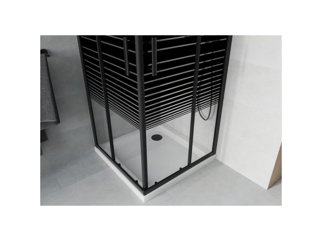 Mexen Rio sprchový kút štvorcový 70 x 70 cm, pásy, profil čierny + sprchová vanička Flat, biela - 860-070-070-70-20-4010B