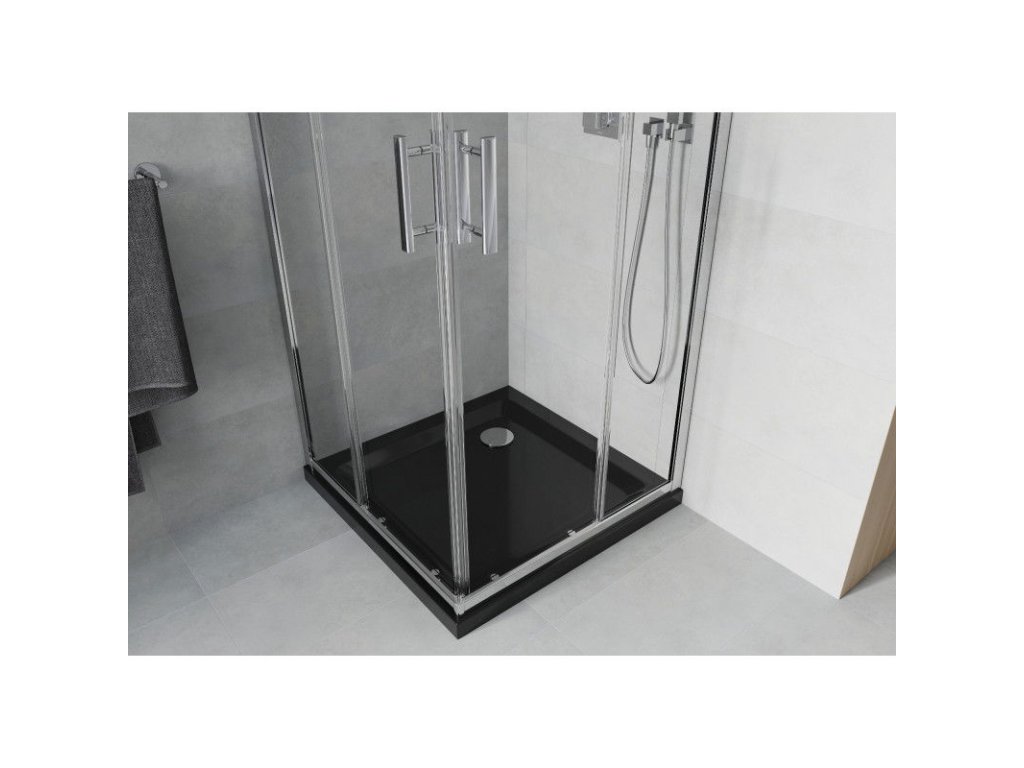Mexen Rio sprchový kút štvorcový 70 x 70 cm, priehľadné sklo, profil chróm + sprchová vanička Flat, čierna - 860-070-070-01-00-4070