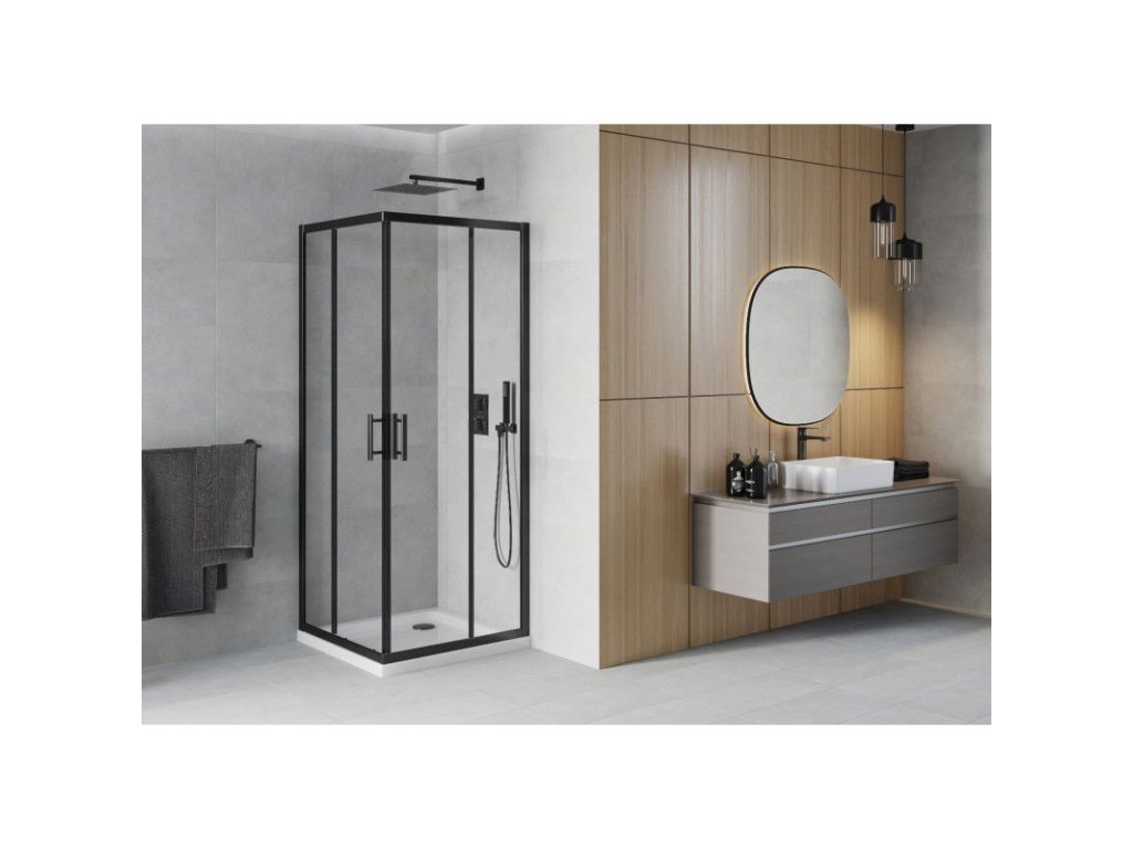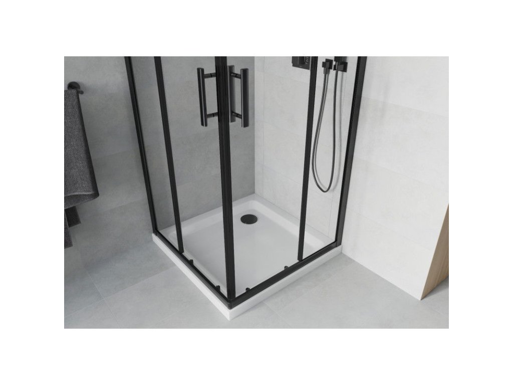 Mexen Rio sprchový kút štvorcový 70 x 70 cm, priehľadné sklo, profil čierny + sprchová vanička Flat, biela - 860-070-070-70-00-4010B