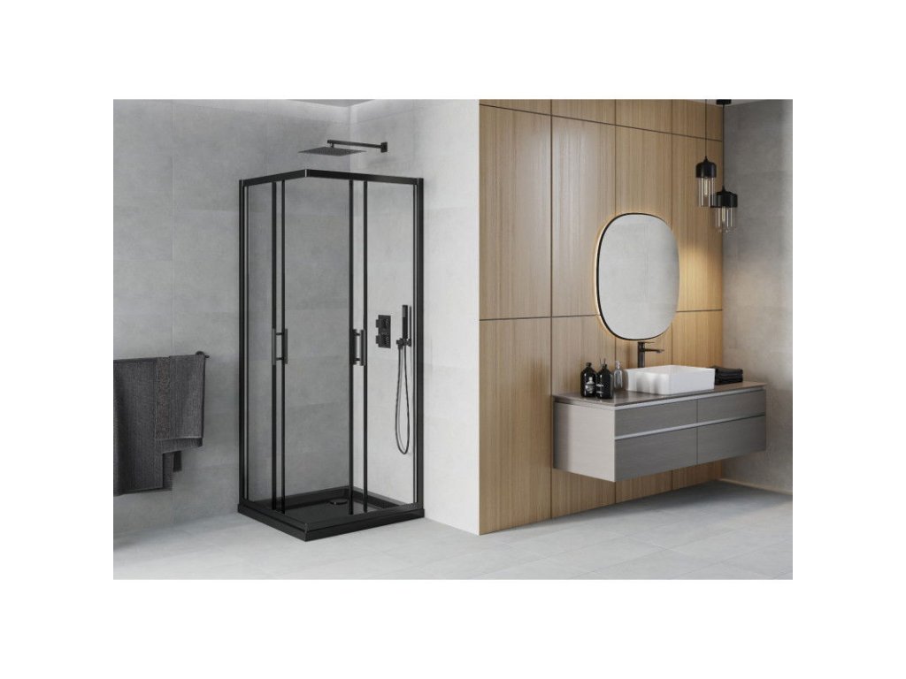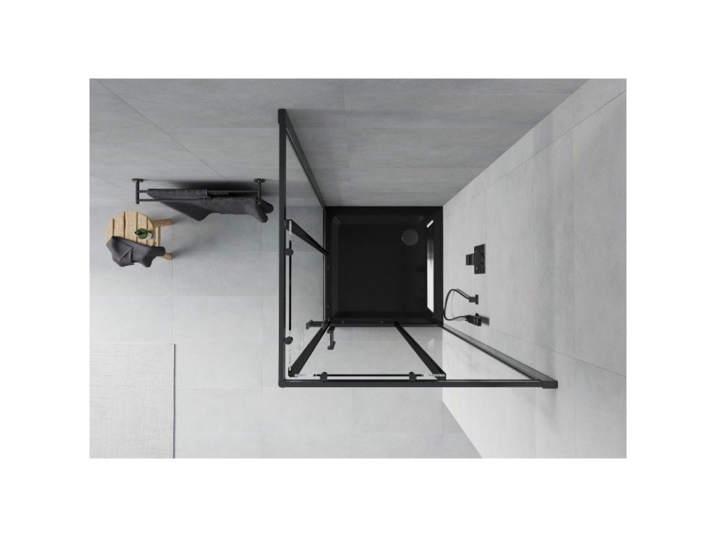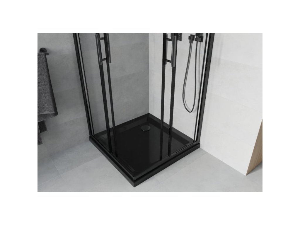 Mexen Rio sprchový kút štvorcový 70 x 70 cm, priehľadné sklo, profil čierny + sprchová vanička Flat, čierna - 860-070-070-70-00-4070B