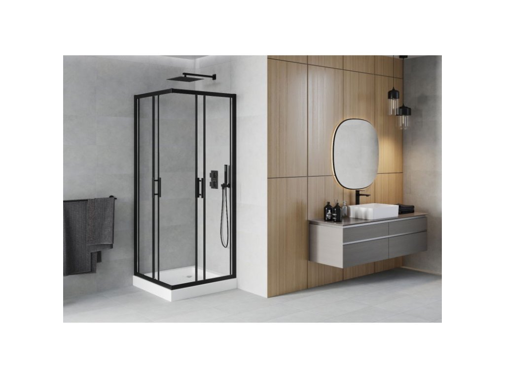 Mexen Rio sprchový kút štvorcový 70 x 70 cm, priehľadné sklo, profil čierny + sprchová vanička Rio, biela - 860-070-070-70-00-4510