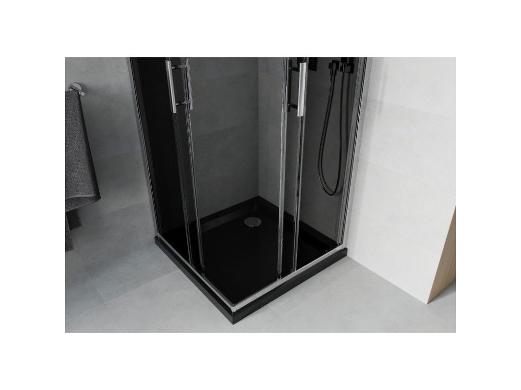 Mexen Rio sprchový kút štvorcový 70 x 70 cm, šedé sklo, profil chróm + sprchová vanička Flat, čierna - 860-070-070-01-40-4070