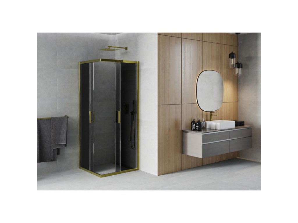 Technické údaje: rozmery: 70x70 cm výška: 190 cm montáž: univerzálna Ľ+P vstup: posuvné dvere farba skla: šedé sklo - grafit povrchová úprava: zlatá lesklá typ skla: tvrdené - bezpečnostné hrúbka skla: 5 mm profil: hliník povlak pre ľahké čistenie : áno vyrovnanie nerovností steny: áno nastavenie šírky: áno montáž na dlažbu alebo sprchovú vaničku: áno kovová rukoväť sada tesnení na odvod vody hliníkový prah dveríDodatočné parametre