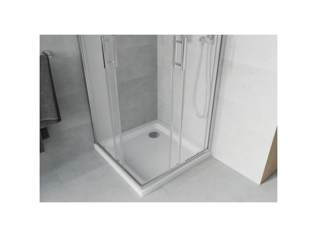 Mexen Rio sprchový kút štvorcový 80 x 80 cm, námraza, profil chróm + sprchová vanička Flat, biela - 860-080-080-01-30-4010