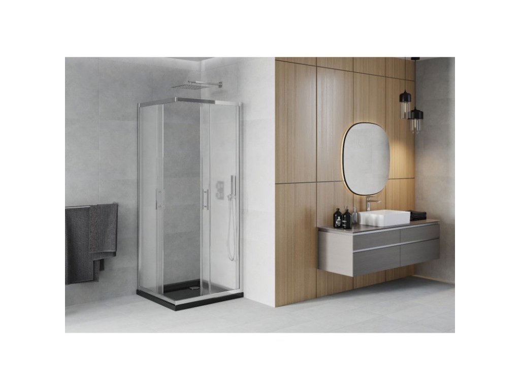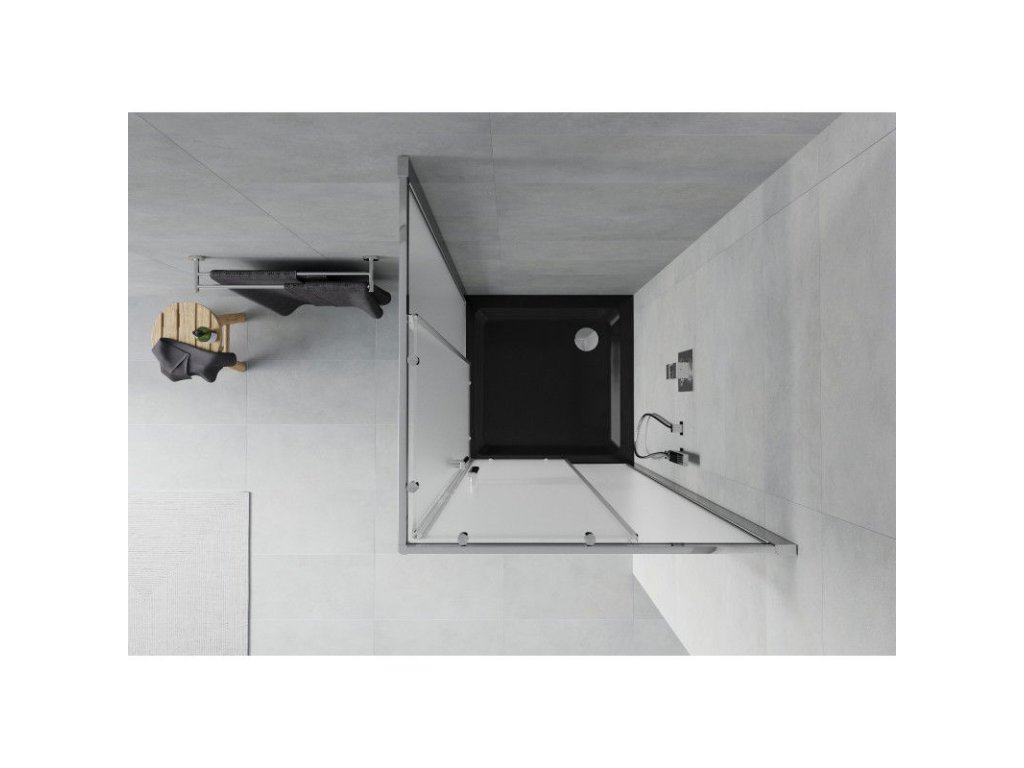 Mexen Rio sprchový kút štvorcový 80 x 80 cm, námraza, profil chróm + sprchová vanička Flat, čierna - 860-080-080-01-30-4070