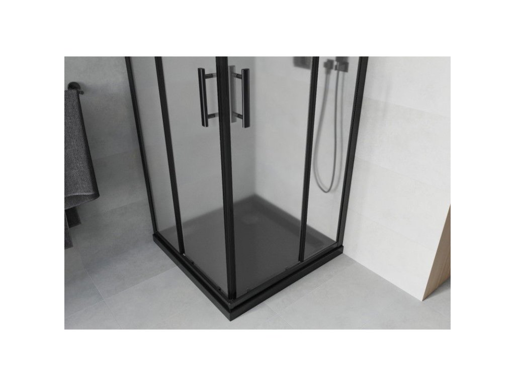 Mexen Rio sprchový kút štvorcový 80 x 80 cm, námraza, profil čierny + sprchová vanička Flat, čierna - 860-080-080-70-30-4070B