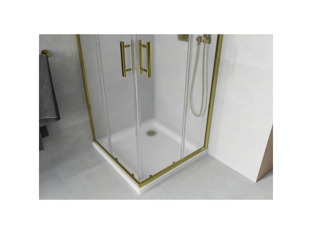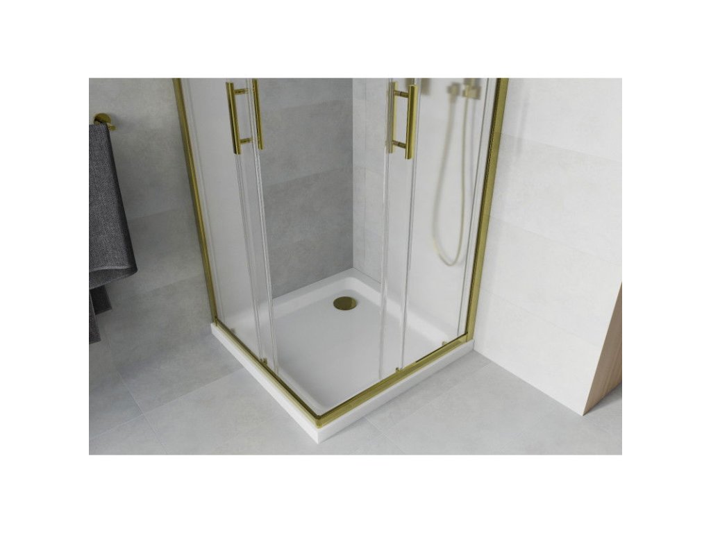 Mexen Rio sprchový kút štvorcový 80 x 80 cm, námraza, profil zlatý + sprchová vanička Flat, biela - 860-080-080-50-30-4010G