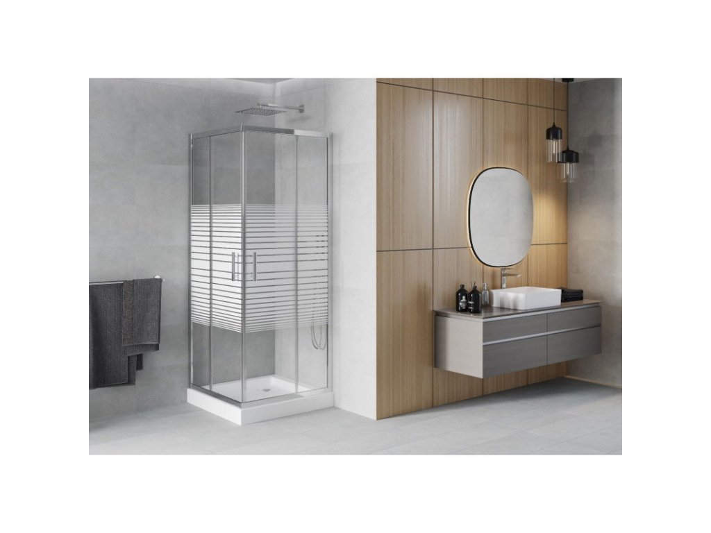 Mexen Rio sprchový kút štvorcový 80 x 80 cm, pásy, profil chróm + sprchová vanička Rio, biela - 860-080-080-01-20-4510