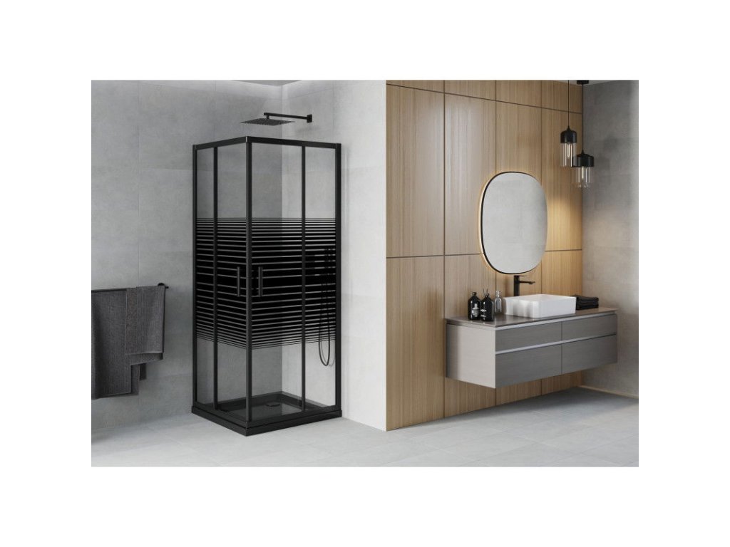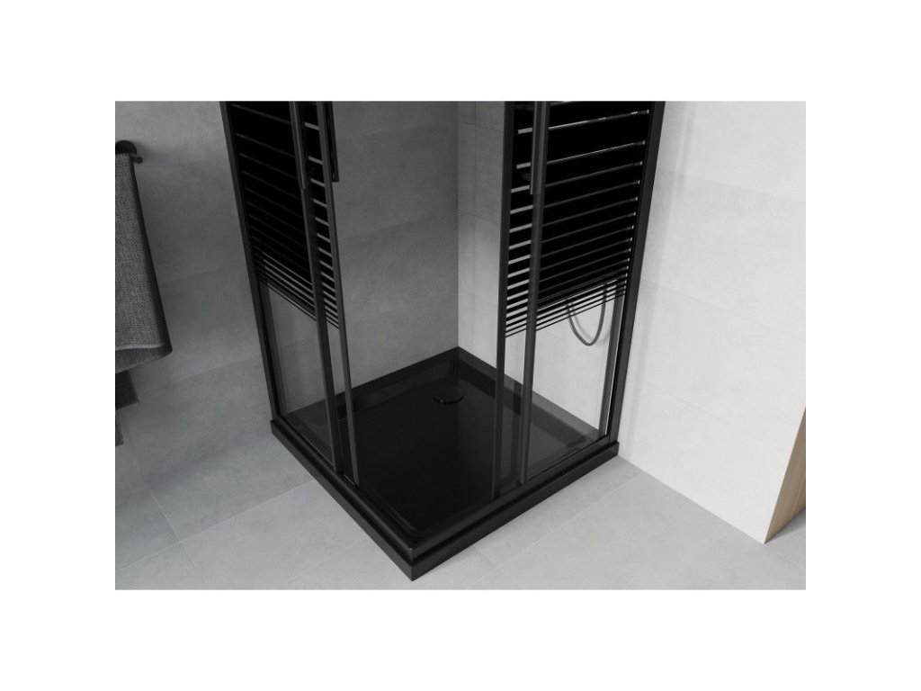 Mexen Rio sprchový kút štvorcový 80 x 80 cm, pásy, profil čierny + sprchová vanička Flat, čierna - 860-080-080-70-20-4070B