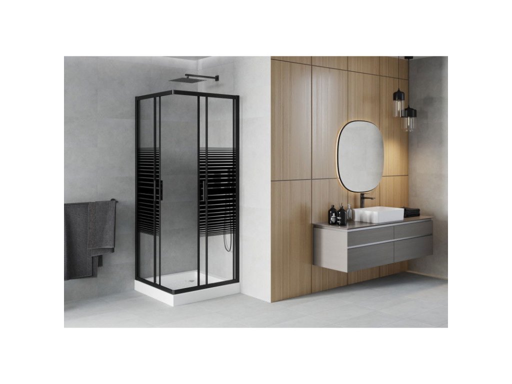 Mexen Rio sprchový kút štvorcový 80 x 80 cm, pásy, profil čierny + sprchová vanička Rio, biela - 860-080-080-70-20-4510