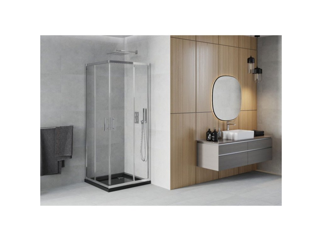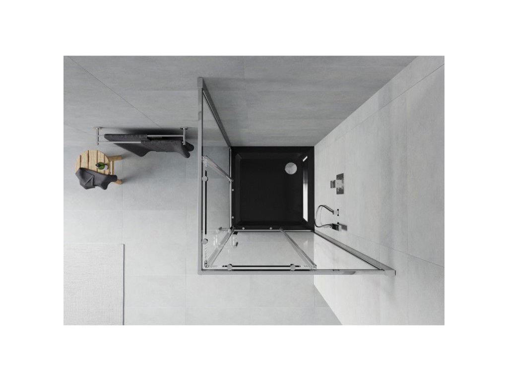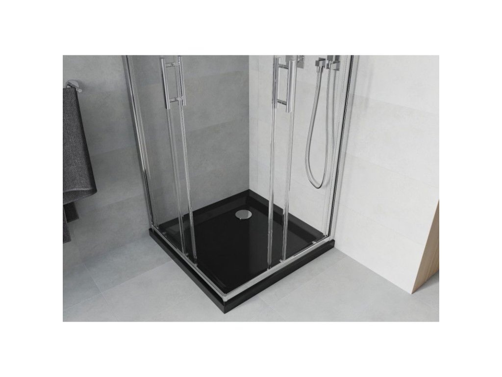 Mexen Rio sprchový kút štvorcový 80 x 80 cm, priehľadné sklo, profil chróm + sprchová vanička Flat, čierna - 860-080-080-01-00-4070