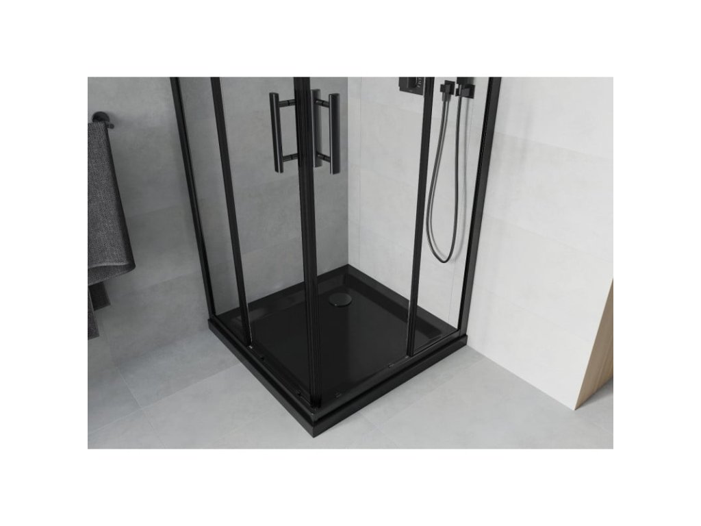 Mexen Rio sprchový kút štvorcový 80 x 80 cm, priehľadné sklo, profil čierny + sprchová vanička Flat, čierna - 860-080-080-70-00-4070B