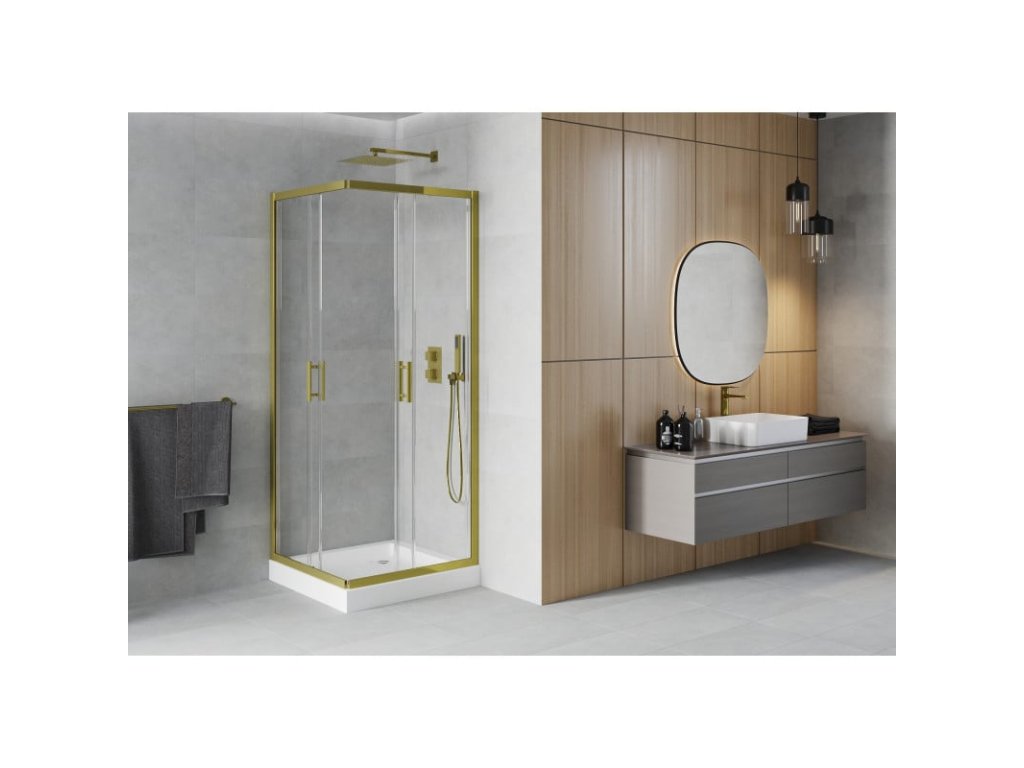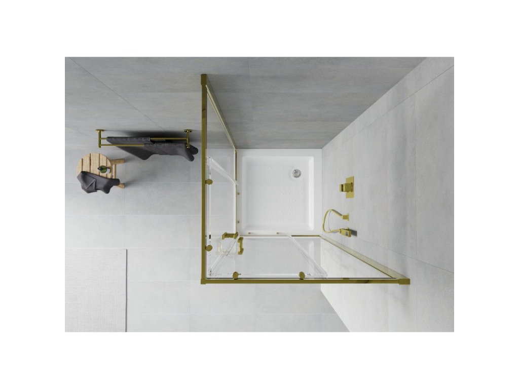 Mexen Rio sprchový kút štvorcový 80 x 80 cm, priehľadné sklo, profil zlatý + sprchová vanička Rio, biela - 860-080-080-50-00-4510