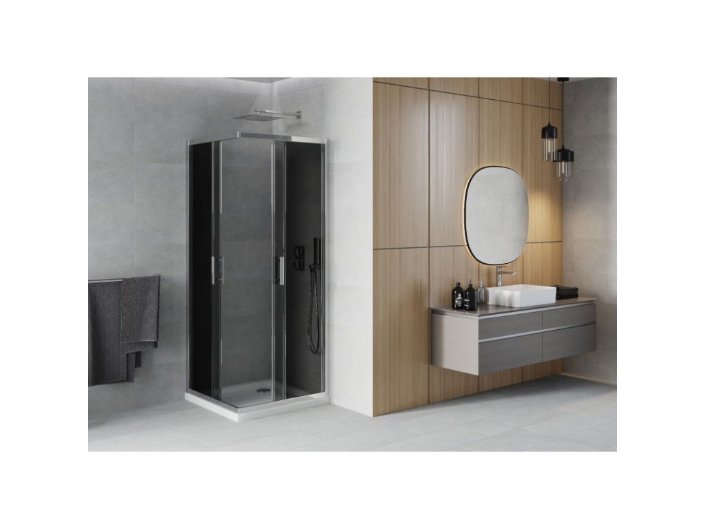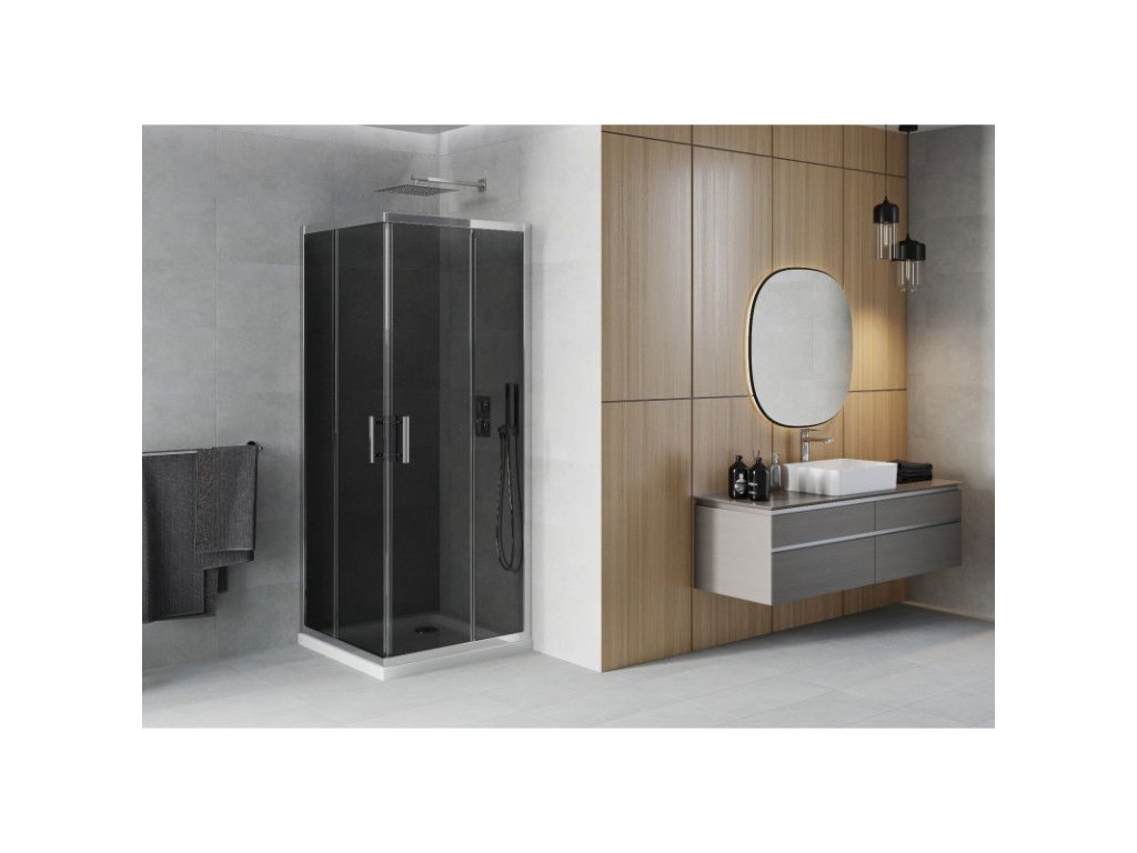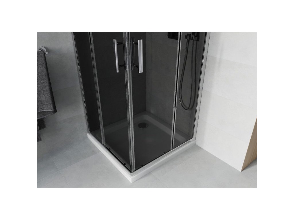 Mexen Rio sprchový kút štvorcový 80 x 80 cm, šedé sklo, profil chróm + sprchová vanička Flat, biela - 860-080-080-01-40-4010