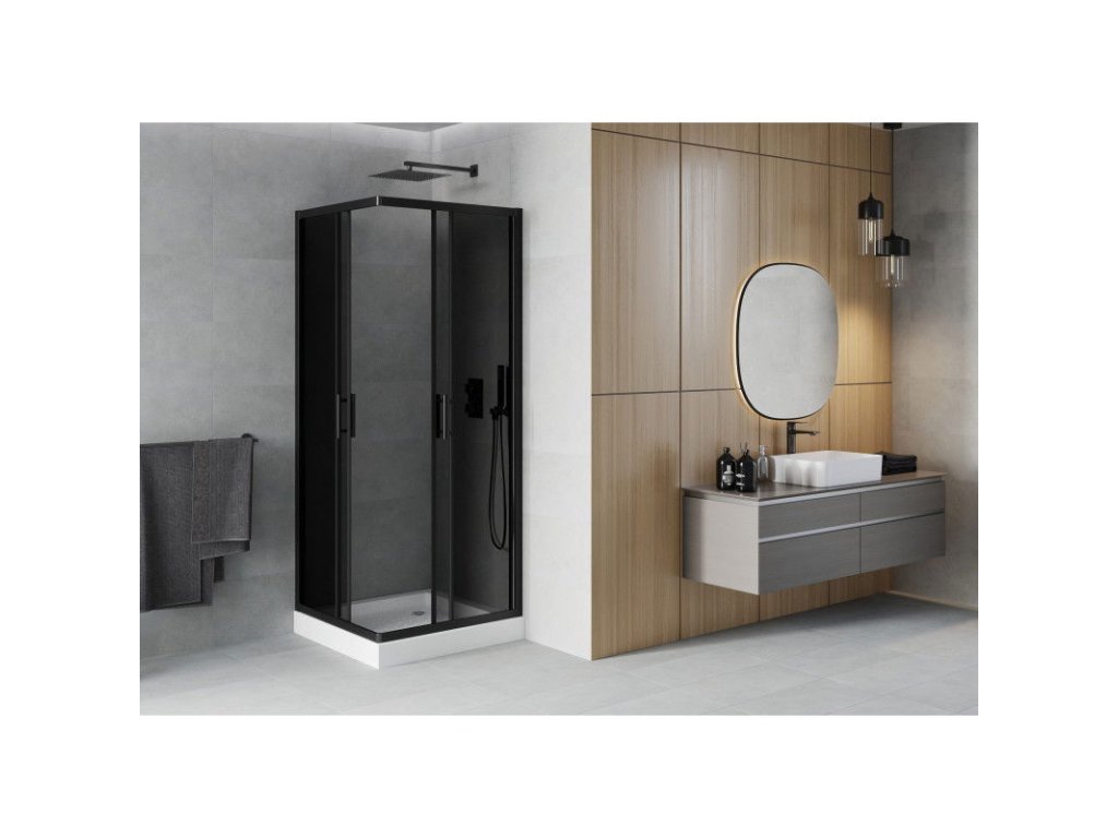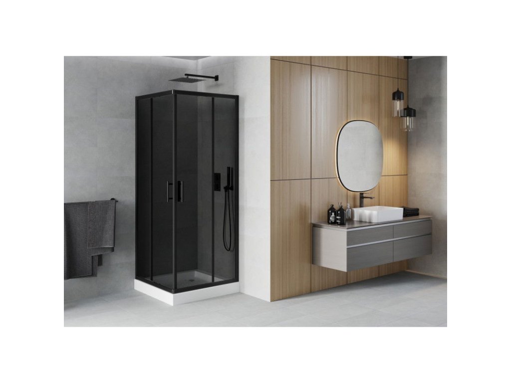 Mexen Rio sprchový kút štvorcový 80 x 80 cm, šedé sklo, profil čierny + sprchová vanička Rio, biela - 860-080-080-70-40-4510