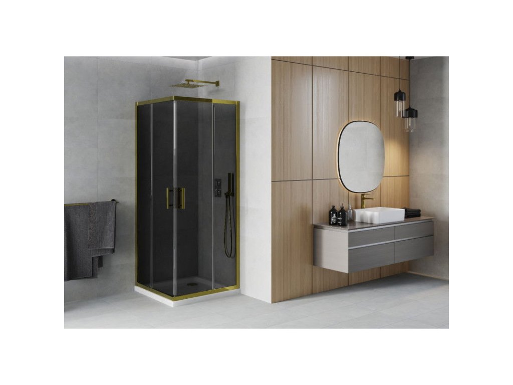 Mexen Rio sprchový kút štvorcový 80 x 80 cm, šedé sklo, profil zlatý + sprchová vanička Flat, biela - 860-080-080-50-40-4010G
