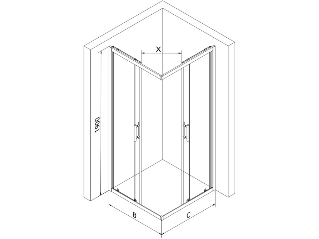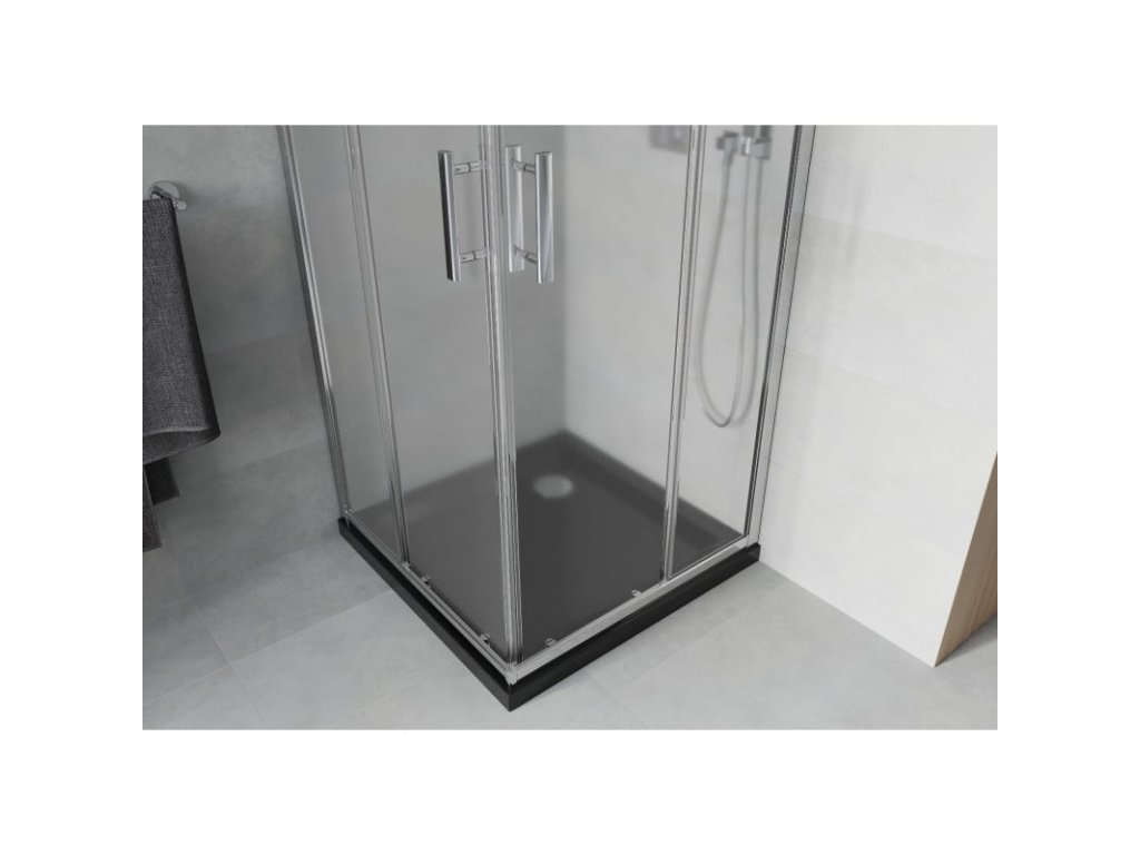 Mexen Rio sprchový kút štvorcový 90 x 90 cm, námraza, profil chróm + sprchová vanička Flat, čierna - 860-090-090-01-30-4070
