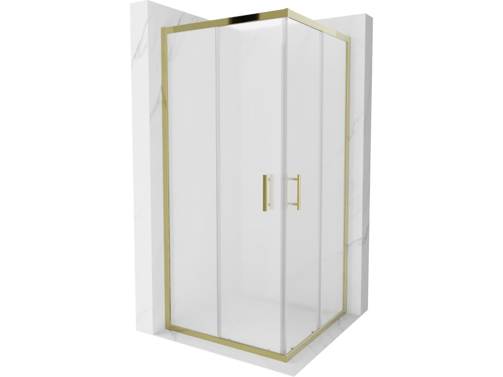 Technické údaje: rozmery: 90x90 cm výška: 190 cm montáž: univerzálna Ľ+P vstup: posuvné dvere farba skla: námraza povrchová úprava: zlatá lesklá typ skla: tvrdené - bezpečnostné hrúbka skla: 5 mm profil: hliník povlak pre ľahké čistenie : áno vyrovnanie nerovností steny: áno nastavenie šírky: áno montáž na dlažbu alebo sprchovú vaničku: áno kovová rukoväť sada tesnení na odvod vody hliníkový prah dveríDodatočné parametre