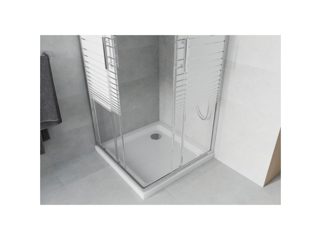 Mexen Rio sprchový kút štvorcový 90 x 90 cm, pásy, profil chróm + sprchová vanička Flat, biela - 860-090-090-01-20-4010