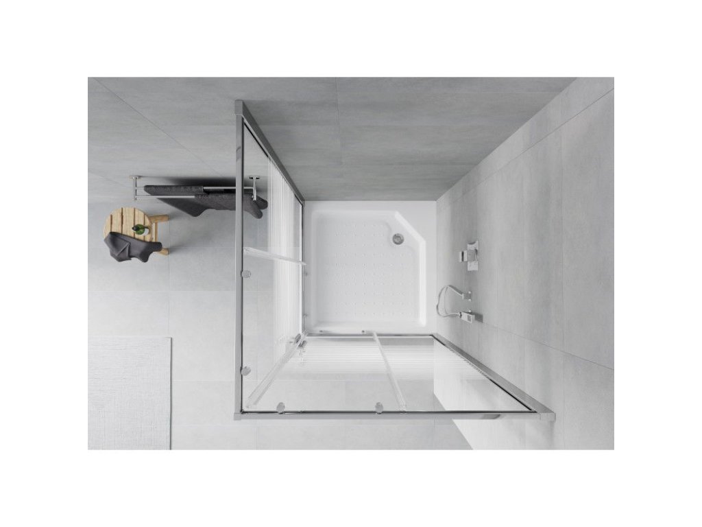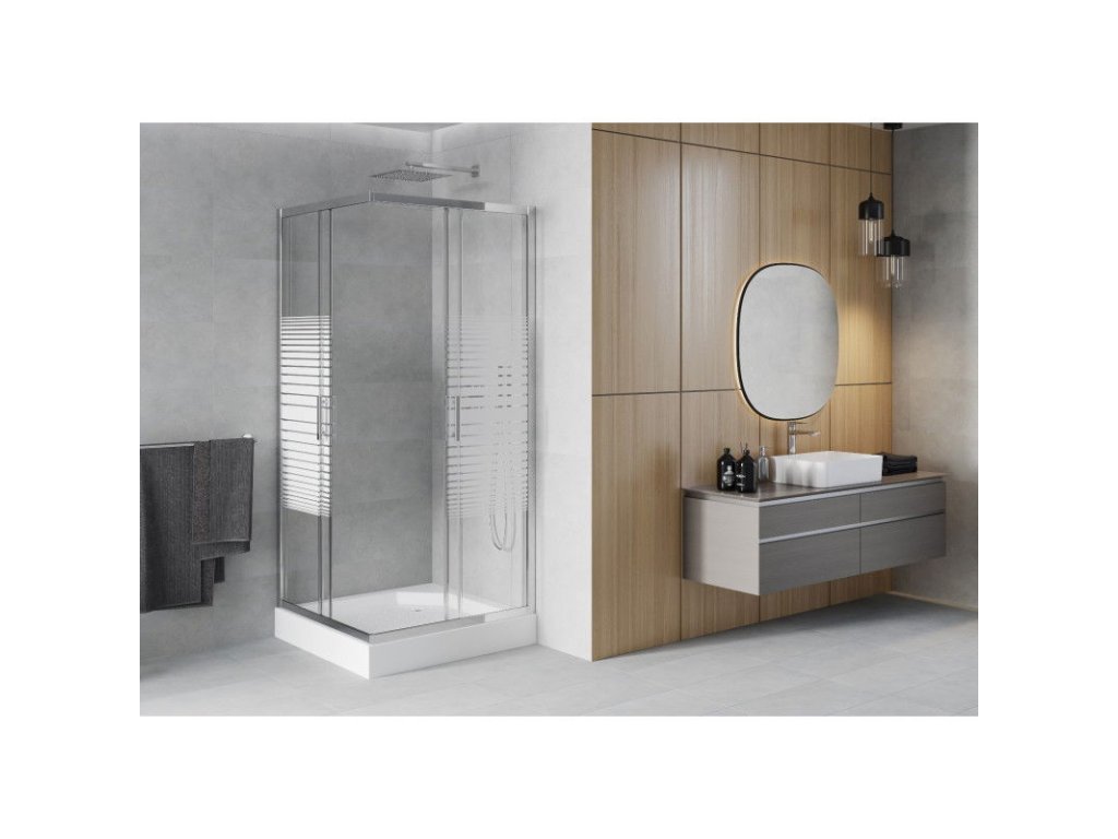Mexen Rio sprchový kút štvorcový 90 x 90 cm, pásy, profil chróm + sprchová vanička Rio, biela - 860-090-090-01-20-4510