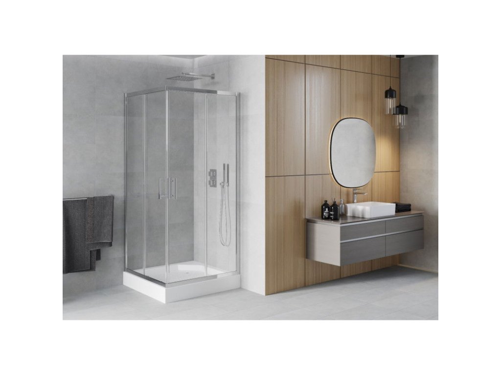 Mexen Rio sprchový kút štvorcový 90 x 90 cm, priehľadné sklo, profil chróm + sprchová vanička Rio, biela - 860-090-090-01-00-4510