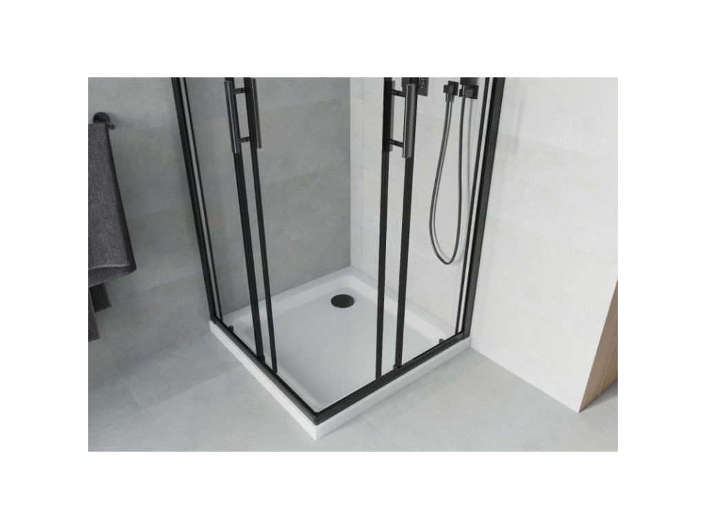 Mexen Rio sprchový kút štvorcový 90 x 90 cm, priehľadné sklo, profil čierny + sprchová vanička Flat, biela - 860-090-090-70-00-4010B