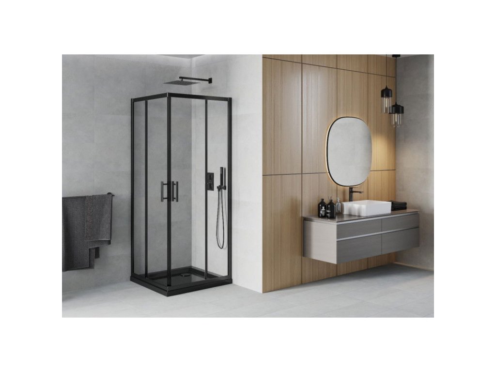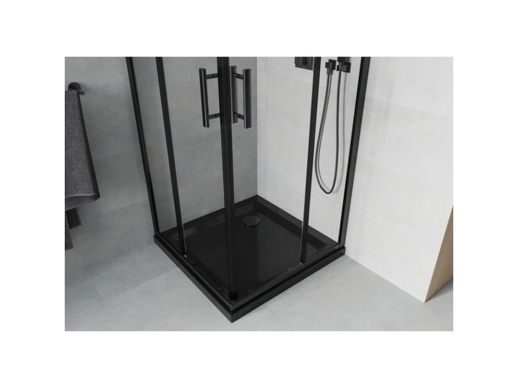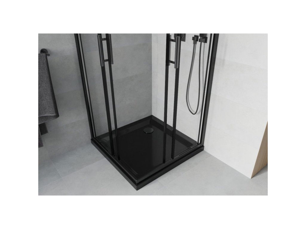 Mexen Rio sprchový kút štvorcový 90 x 90 cm, priehľadné sklo, profil čierny + sprchová vanička Flat, čierna - 860-090-090-70-00-4070B