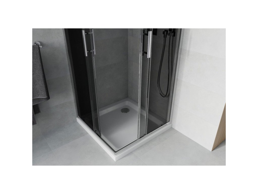 Mexen Rio sprchový kút štvorcový 90 x 90 cm, šedé sklo, profil chróm + sprchová vanička Flat, biela - 860-090-090-01-40-4010