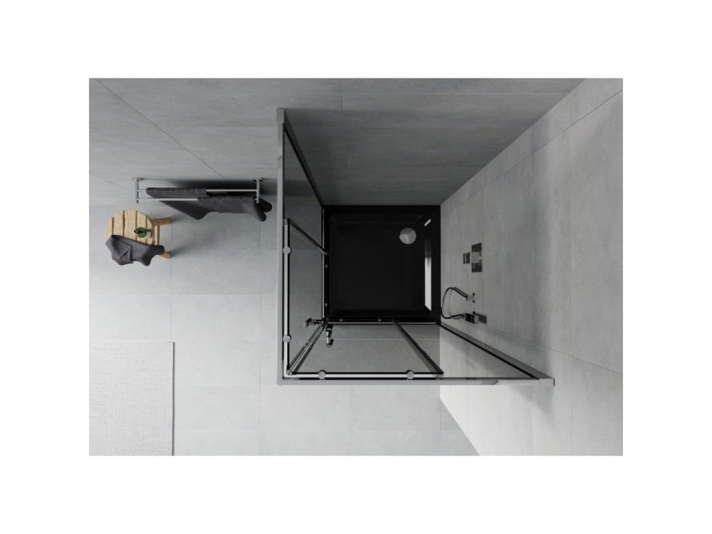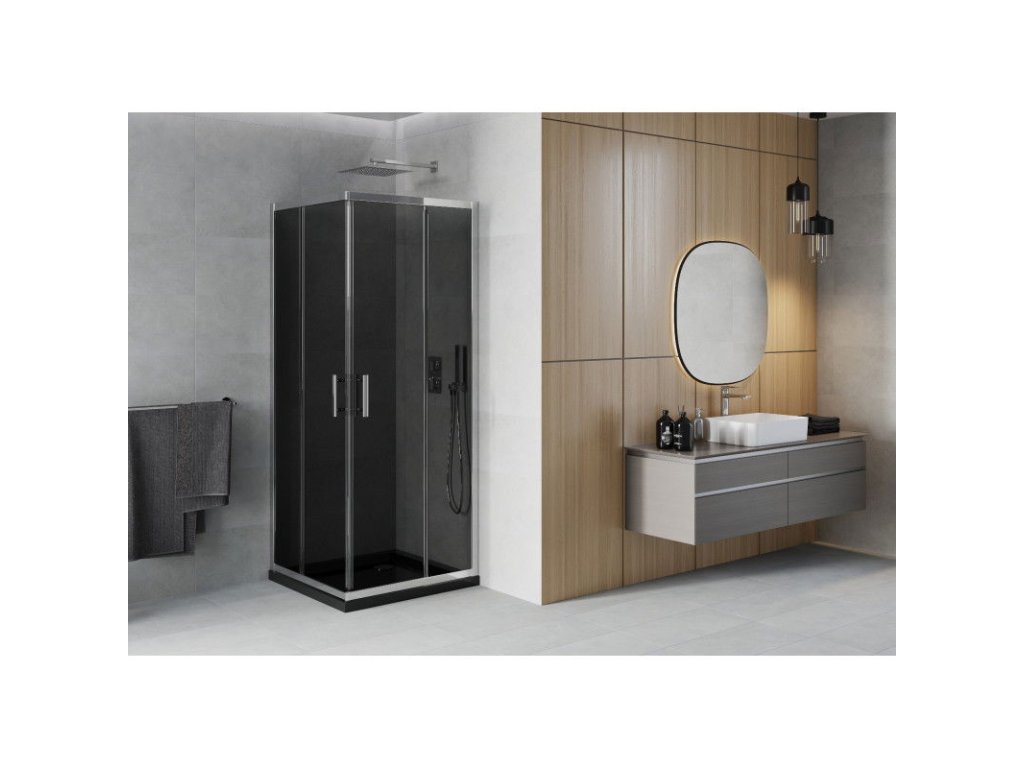 Mexen Rio sprchový kút štvorcový 90 x 90 cm, šedé sklo, profil chróm + sprchová vanička Flat, čierna - 860-090-090-01-40-4070