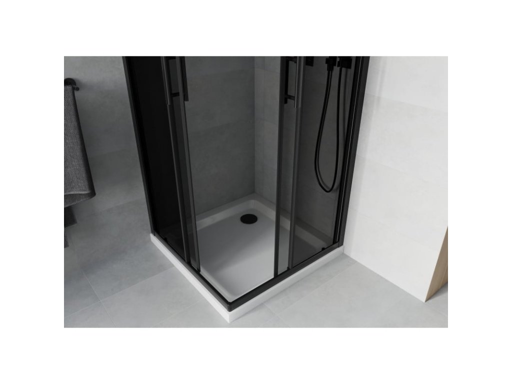 Mexen Rio sprchový kút štvorcový 90 x 90 cm, šedé sklo, profil čierny + sprchová vanička Flat, biela - 860-090-090-70-40-4010B