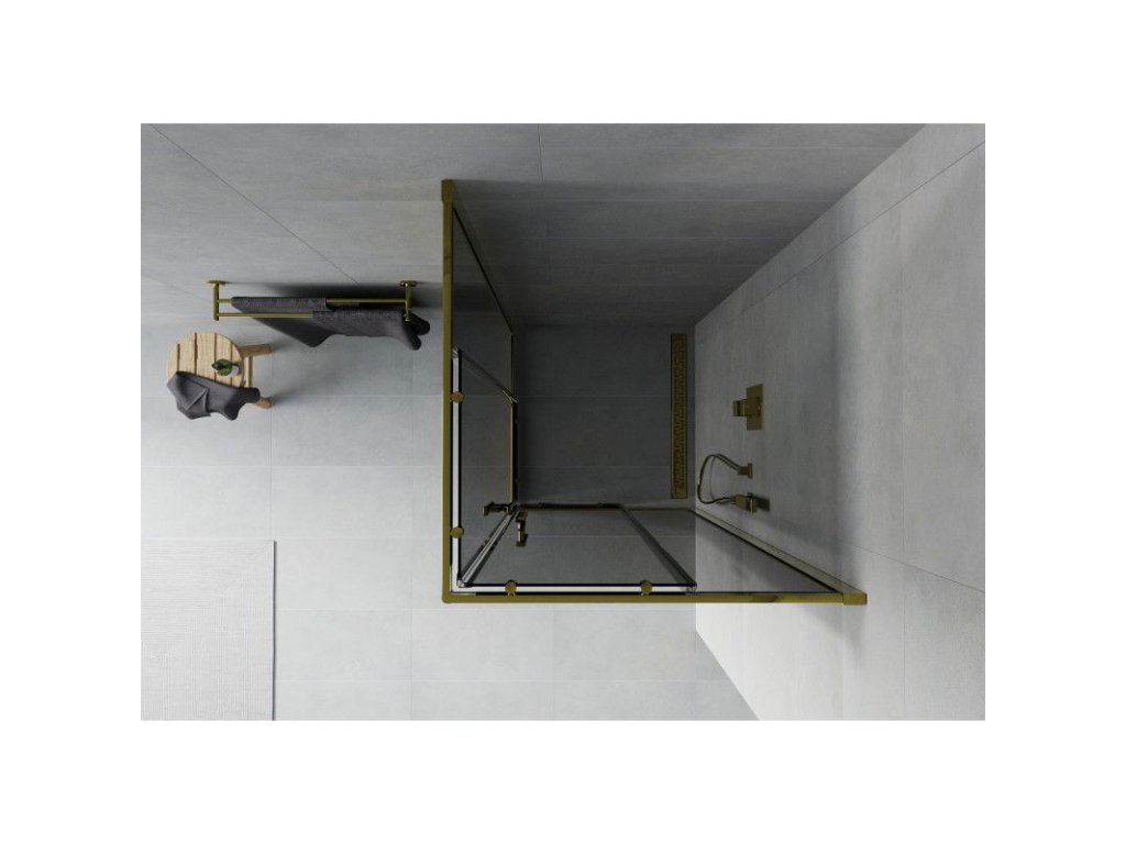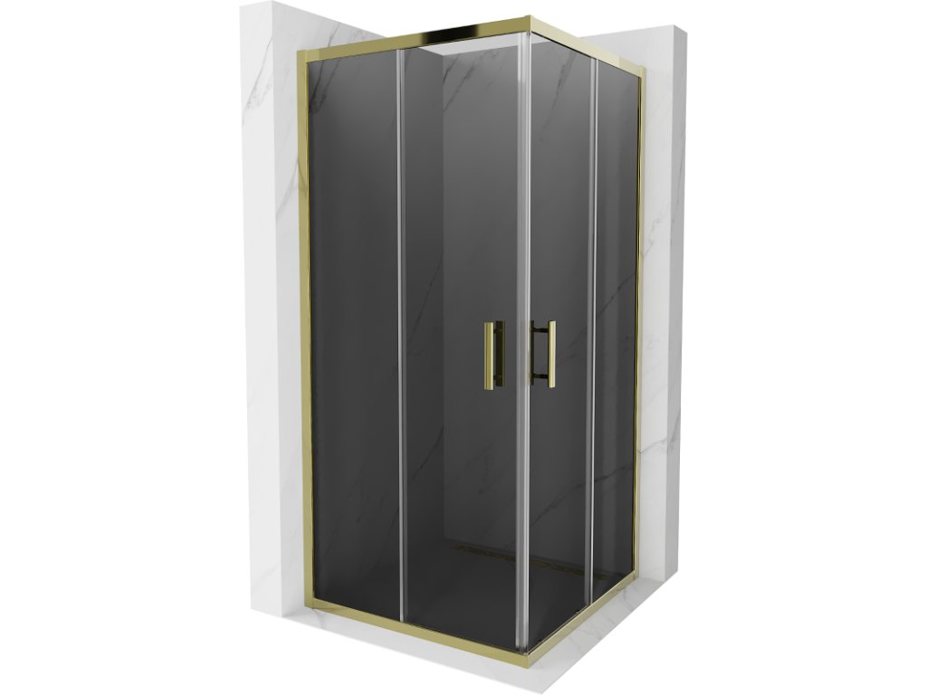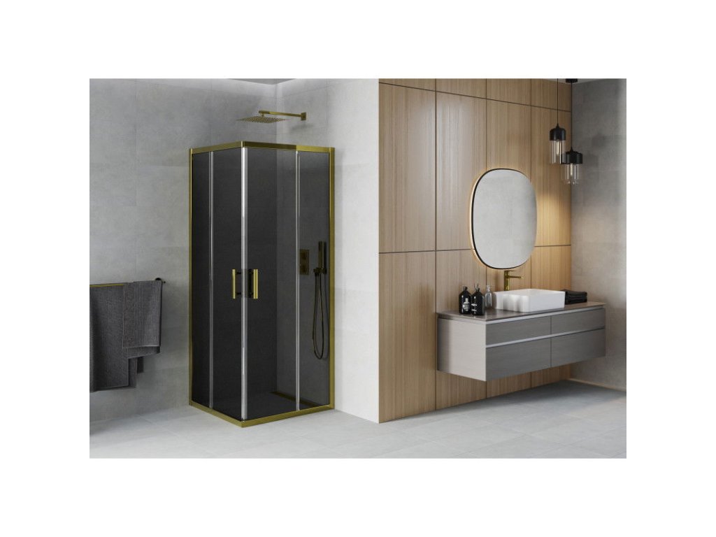 Technické údaje: rozmery: 90x90 cm výška: 190 cm montáž: univerzálna Ľ+P vstup: posuvné dvere farba skla: šedé sklo - grafit povrchová úprava: zlatá lesklá typ skla: tvrdené - bezpečnostné hrúbka skla: 5 mm profil: hliník povlak pre ľahké čistenie : áno vyrovnanie nerovností steny: áno nastavenie šírky: áno montáž na dlažbu alebo sprchovú vaničku: áno kovová rukoväť sada tesnení na odvod vody hliníkový prah dveríDodatočné parametre