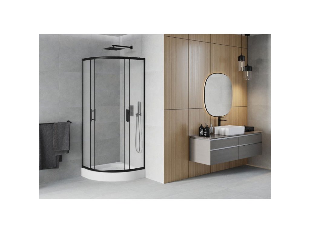 Mexen Rio sprchový kút štvrťkruhový 70 x 70 cm, námraza, profil čierny + sprchová vanička Rio, biela - 863-070-070-70-30-4710
