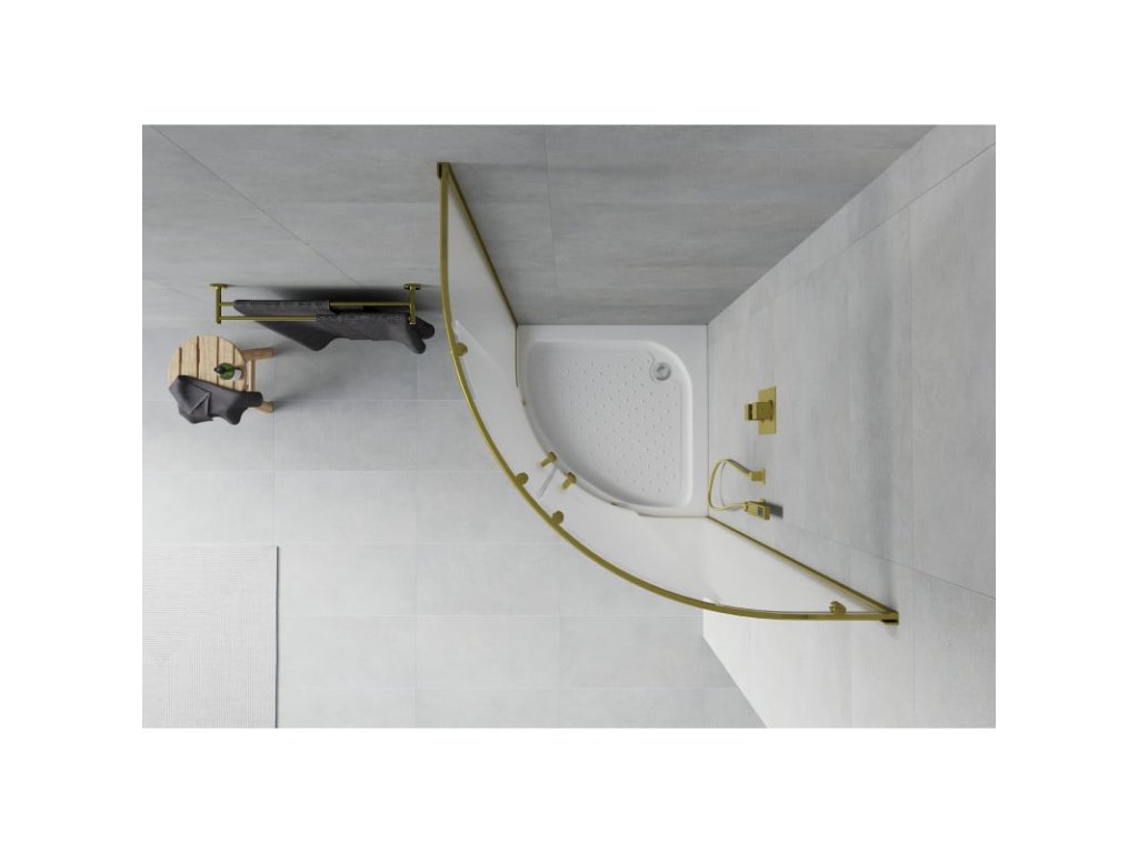 Mexen Rio sprchový kút štvrťkruhový 70 x 70 cm, námraza, profil zlatý + sprchová vanička Rio, biela - 863-070-070-50-30-4710
