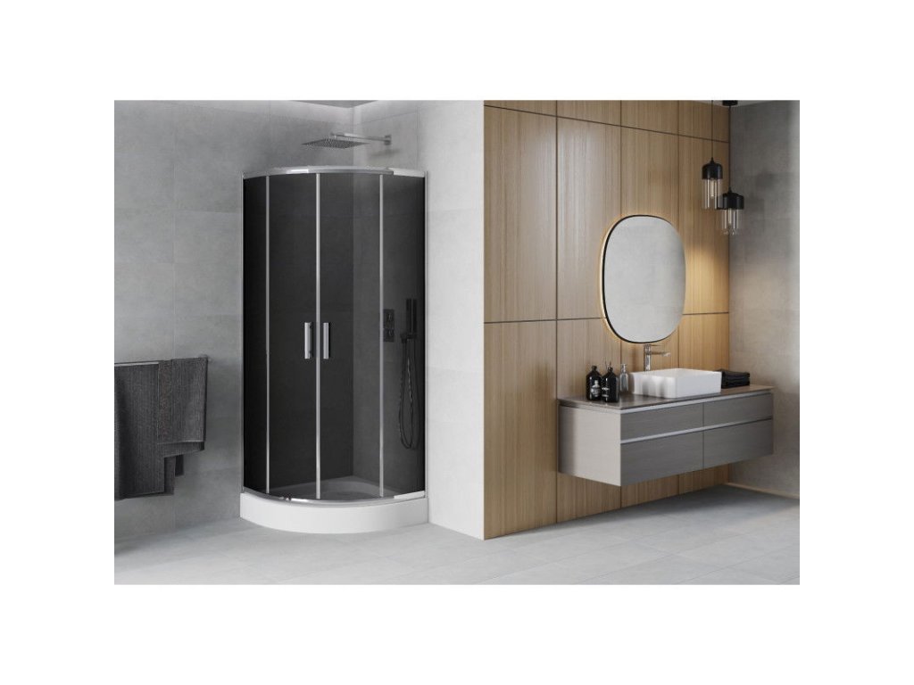 Mexen Rio sprchový kút štvrťkruhový 70 x 70 cm, šedé sklo, profil chróm + sprchová vanička Rio, biela - 863-070-070-01-40-4710