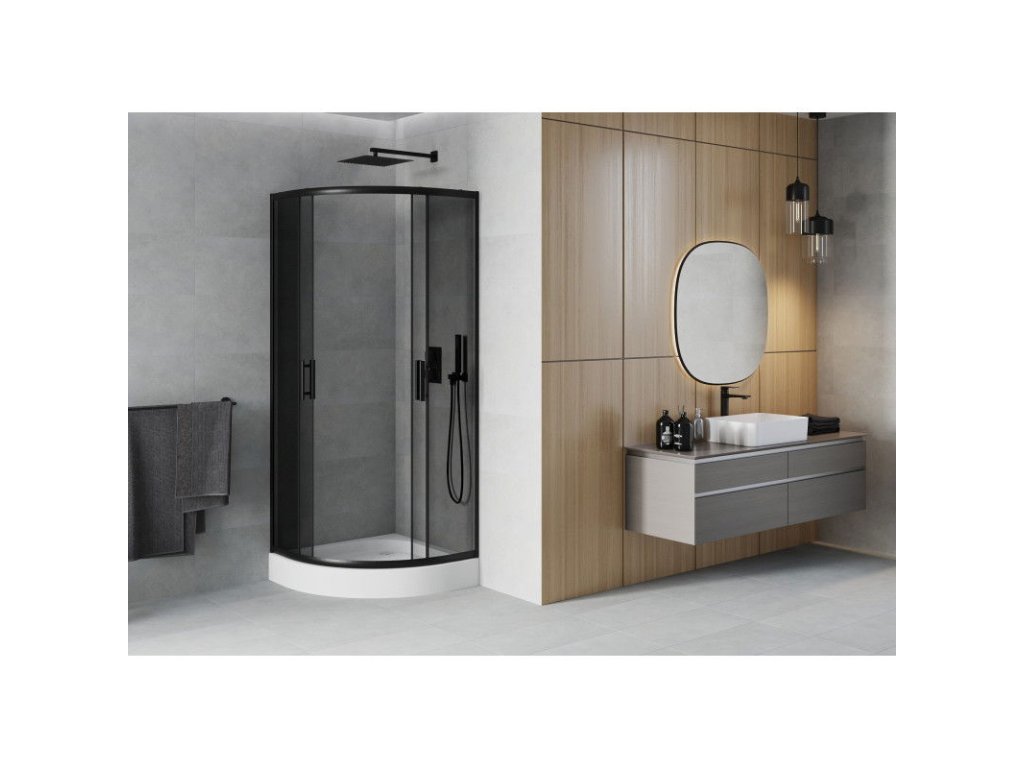 Mexen Rio sprchový kút štvrťkruhový 70 x 70 cm, šedé sklo, profil čierny + sprchová vanička Rio, biela - 863-070-070-70-40-4710