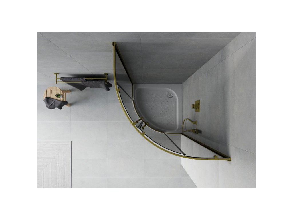 Mexen Rio sprchový kút štvrťkruhový 70 x 70 cm, šedé sklo, profil zlatý + sprchová vanička Rio, biela - 863-070-070-50-40-4710