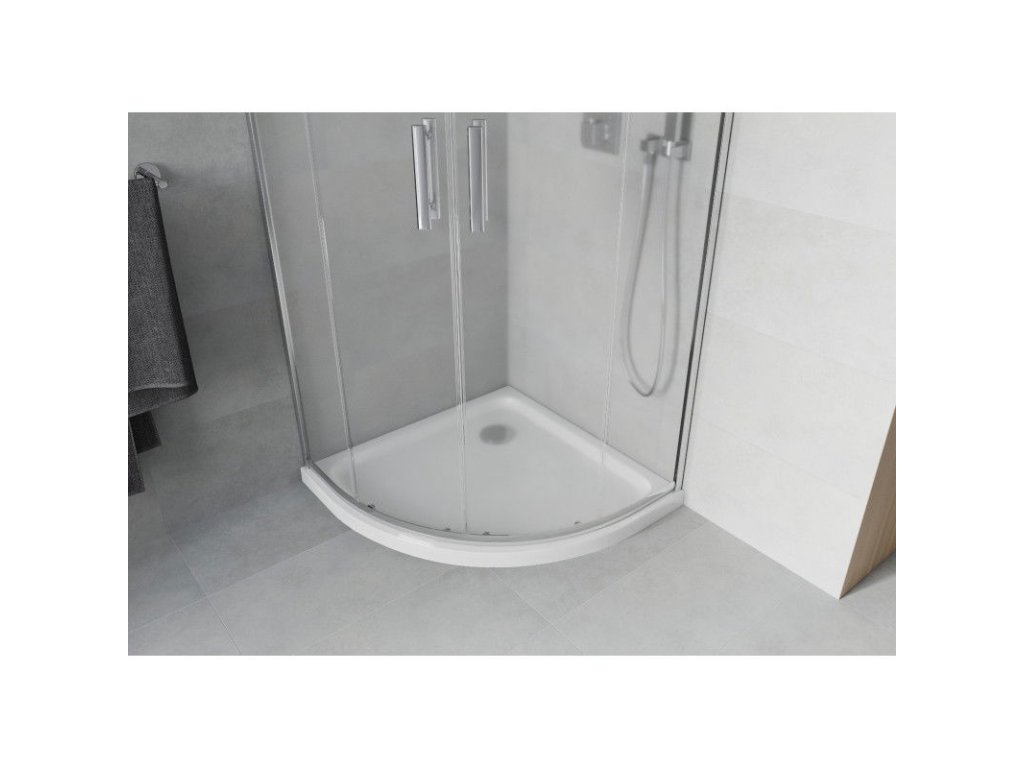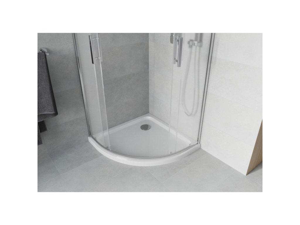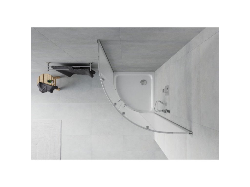 Mexen Rio sprchový kút štvrťkruhový 80 x 80 cm, námraza, profil chróm + sprchová vanička Flat, biela - 863-080-080-01-30-4110