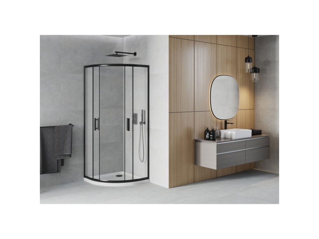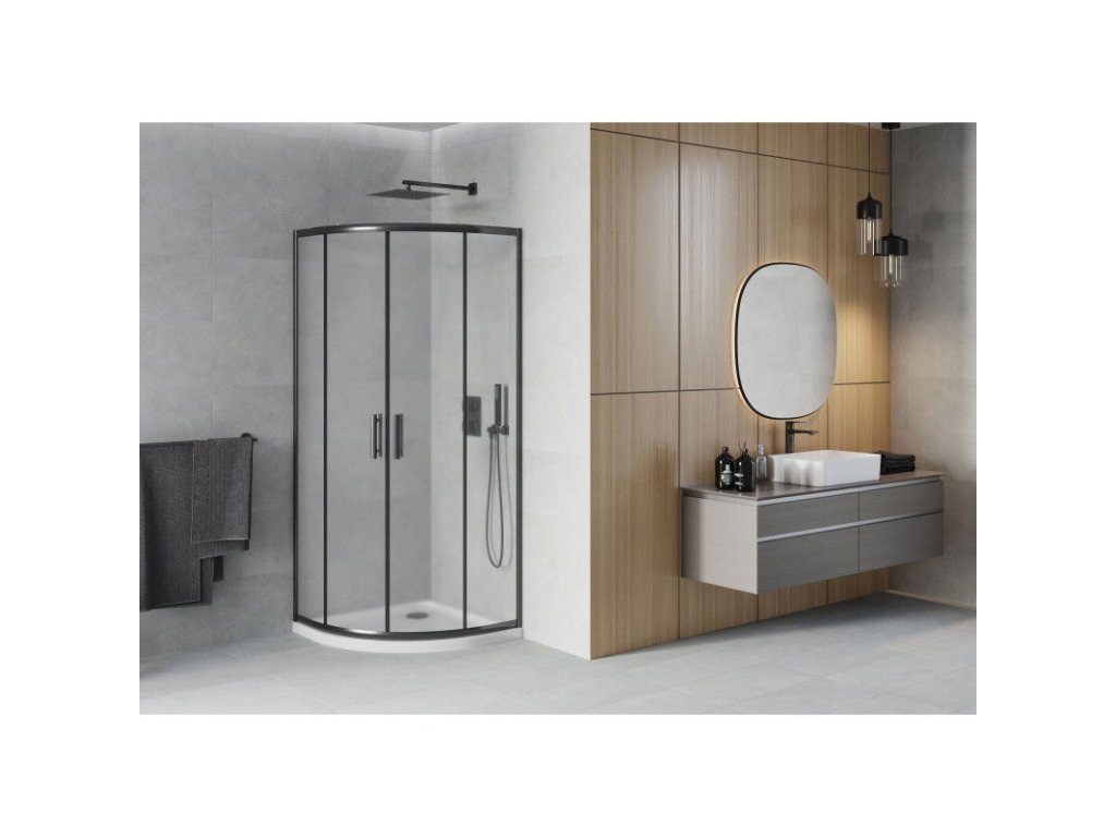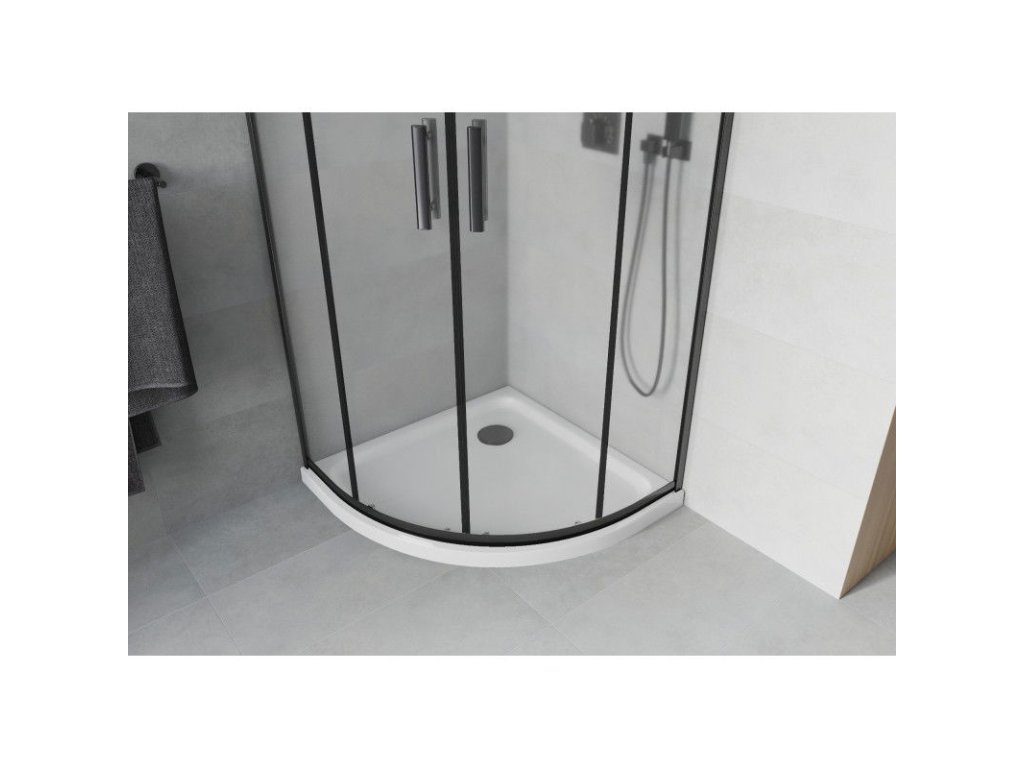 Mexen Rio sprchový kút štvrťkruhový 80 x 80 cm, námraza, profil čierny + sprchová vanička Flat, biela - 863-080-080-70-30-4110B