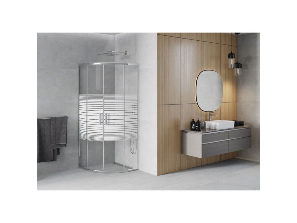 Mexen Rio sprchový kút štvrťkruhový 80 x 80 cm, pásy, profil chróm - 863-080-080-01-20